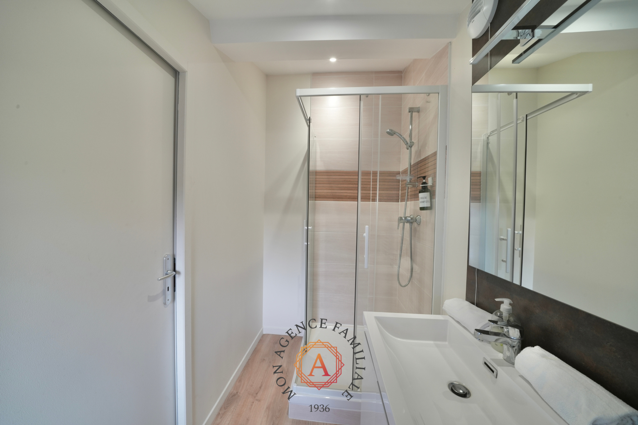Il se compose d’une belle pièce de vie lumineuse avec cuisine aménagée et équipée, de trois chambres dont une suite parentale avec salle d’eau privative, d’une seconde salle d’eau ainsi que de deux WC.