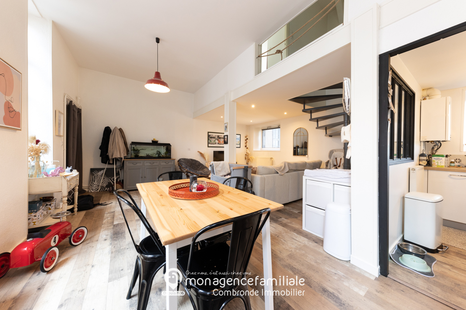 A vendre, magnifique appartement typé loft de 4 pièces en plein cœur de Riom, à deux pas de tous les commerces et écoles. Ce bien d'environ 55m² a été rénové et est en parfait état. Au rez-de-chaussée, vous trouverez un hall d'entrée ainsi qu'un grand séjour lumineux avec cuisine équipée. A l'étage, vous découvrirez une jolie chambre et une salle d'eau spacieuse et lumineuse avec WC. Pour plus d'informations ou pour organiser une visite, contactez Christophe COMBRONDE au 06.61.75.37.42. Cette propriété est proposée par Mon Agence Familiale Combronde Immobilier à Riom, spécialisée dans la vente d'appartements à Riom. Nous sommes là pour vous aider à trouver le logement de vos rêves ou à vendre votre bien immobilier à Centre de Riom.